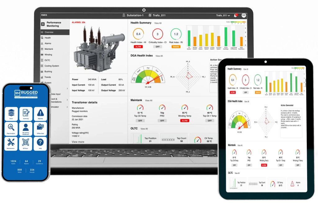 From power generation to data centers, RM EYE utilizes advanced algorithms to address issues related to critical transformer parameters such as bushing capacitance, partial discharge, and winding hotspot temperatures. Its proactive approach analyzes operational trends, detects anomalies, and predicts potential failures through informed data-driven decisions.